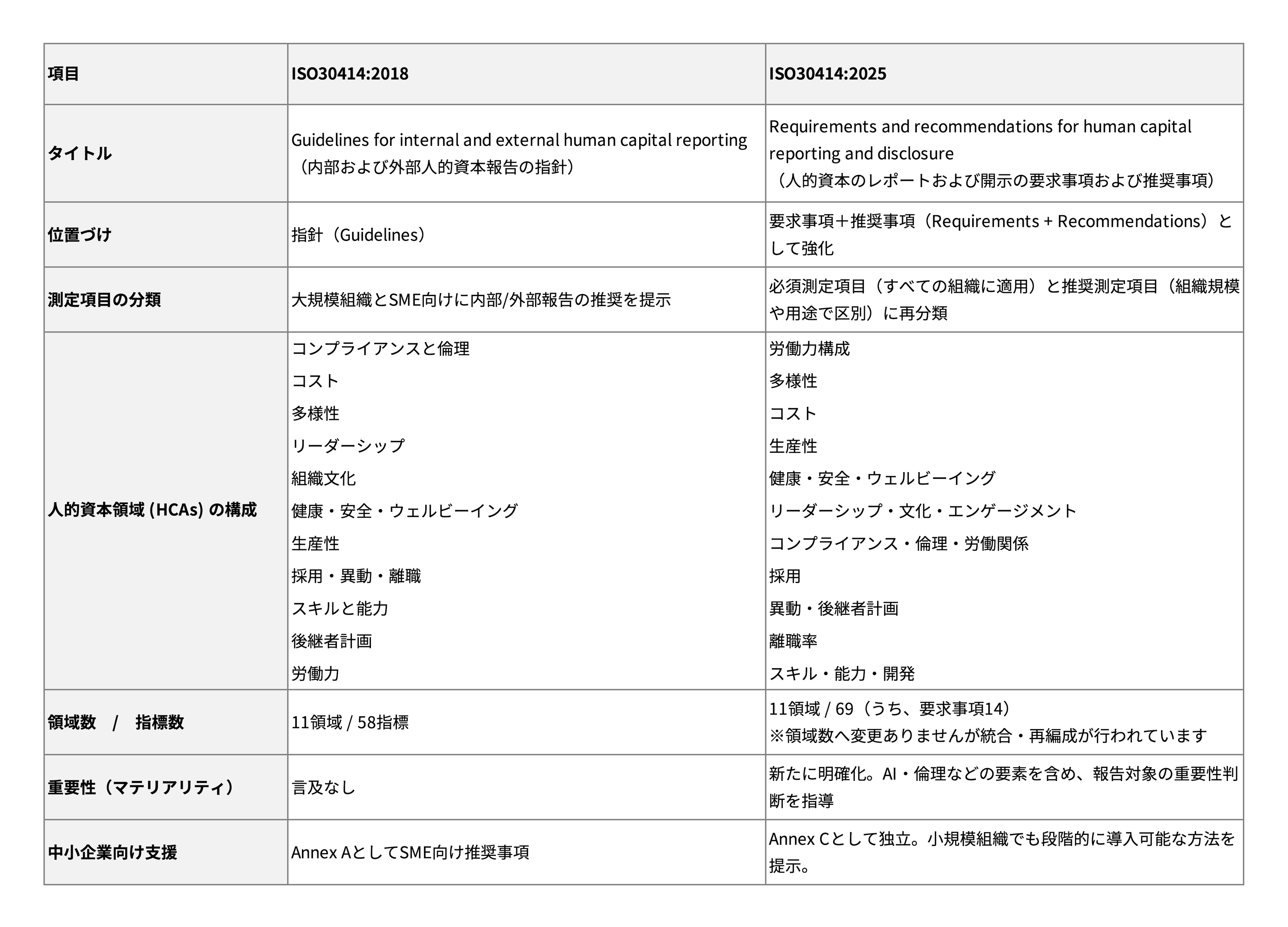 人的資本報告・開示を規定する国際規格として2018年に初めて登場したISO30414は、2025年8月25日に、タイトルを従来の「ガイドライン」から「要求・推奨事項」へと格上げされ、2025年版として公開されました。